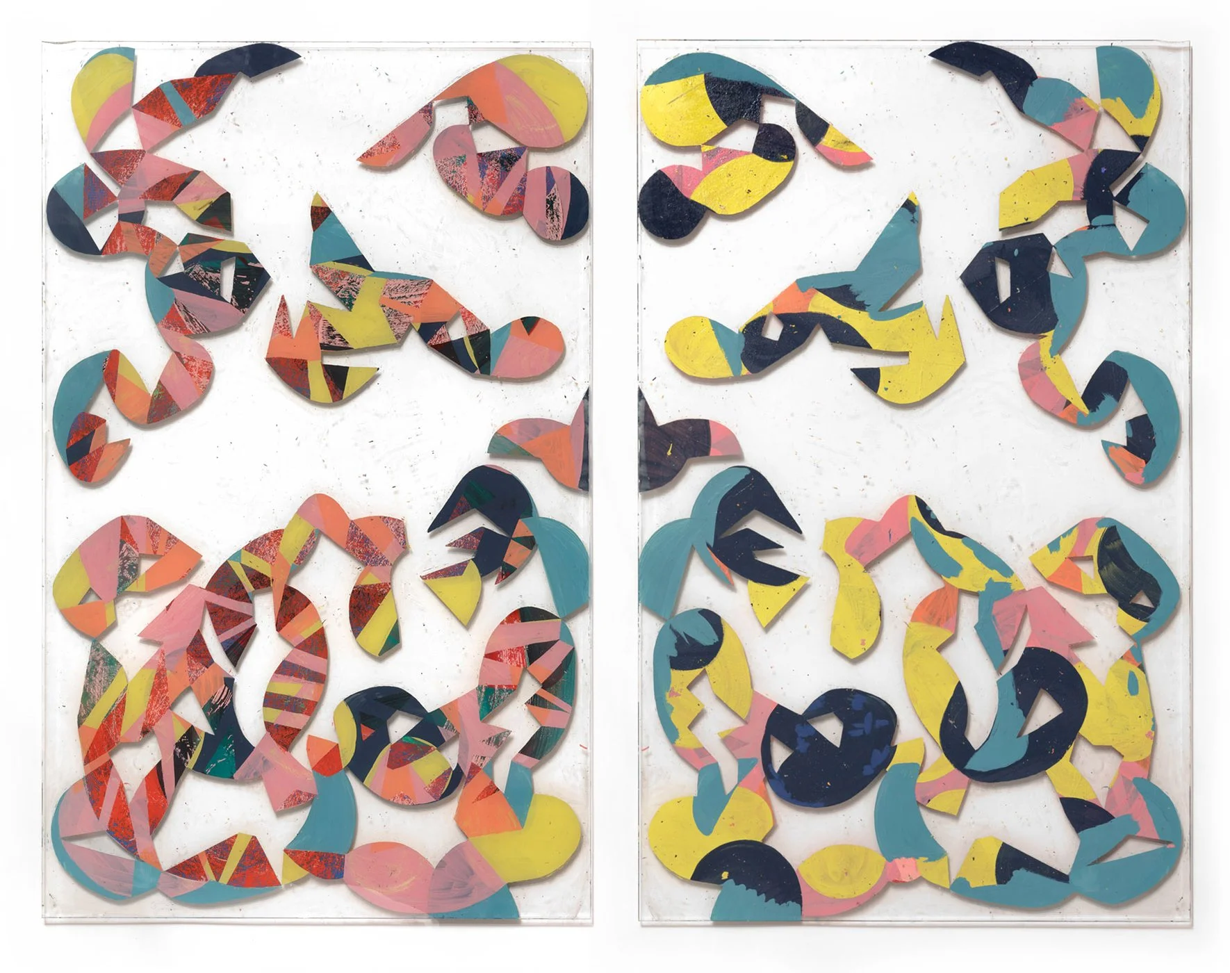 Sprinkle Buzz left: front, right: back | 2021 | 96 x 60 cm | reverse-glass-painting | acrylic paint on glass