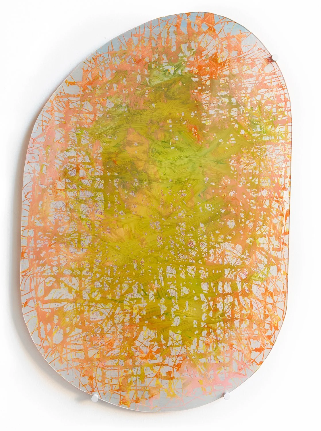 2022 I started to cut-out glass plates into organic shapes. Freeing the forms. Most of the time I do the cut after I painted. So the paint actually defines the shape.