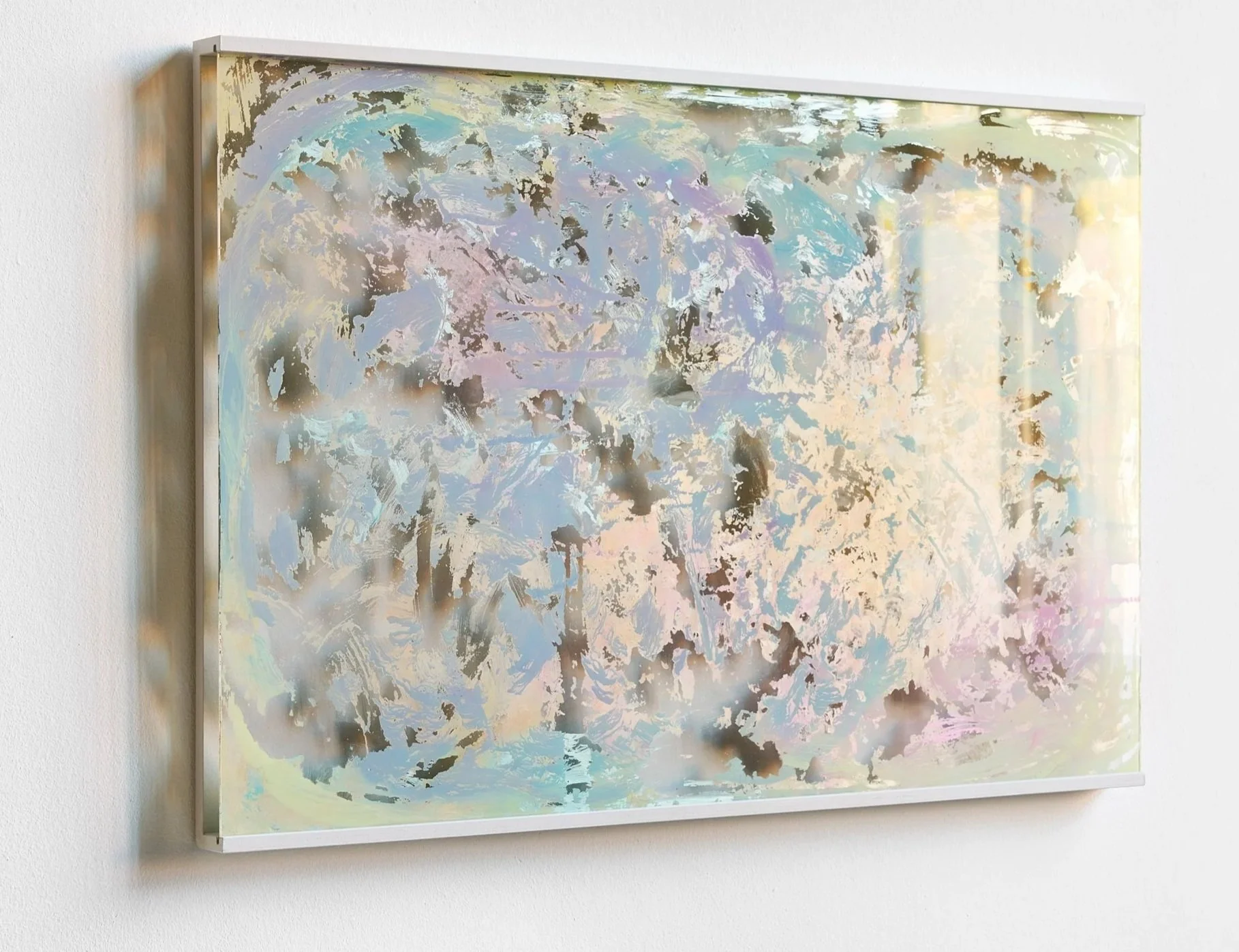 How does glass work with acrylic colour or colored ink? The glass isn’t absorbing the color. Being able to fix layers of paint on glass was a big issue in the beginning. With time I started to embrace the specificity. Using the characteristics of the material to find the unexpected.